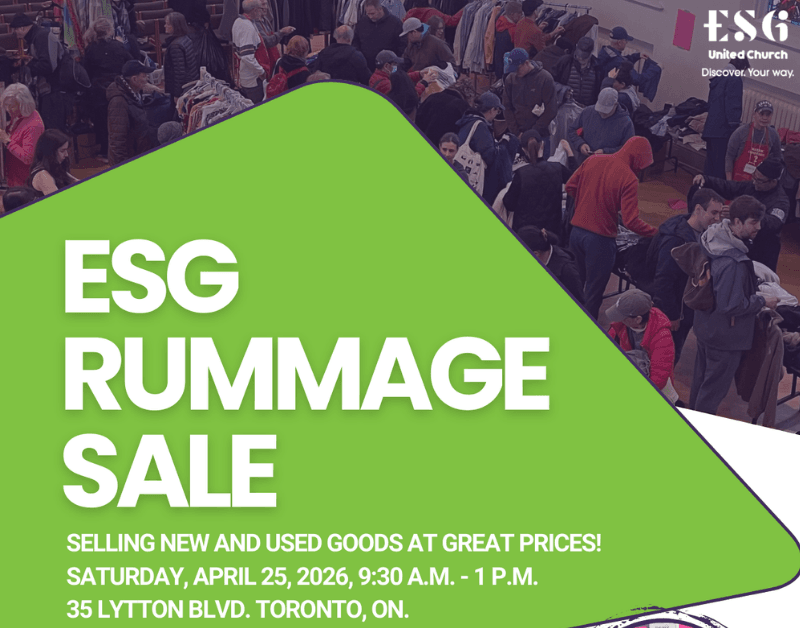ESG United Church 35 Lytton Blvd., Toronto, Ontario, CanadaJoin us for our Upcoming Rummage Sale as ESG United Church collects donations from community members to sell at our...